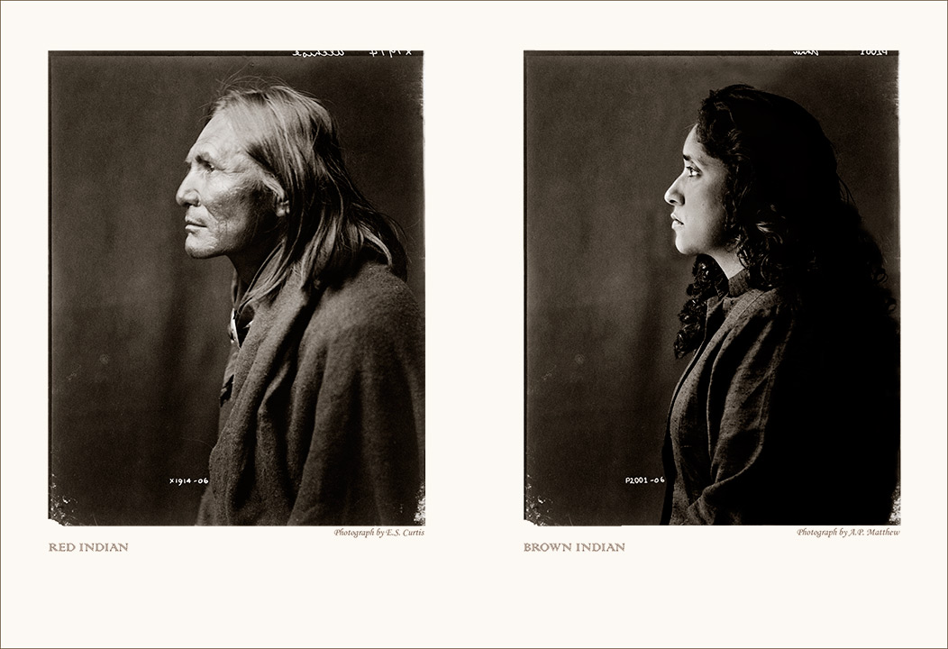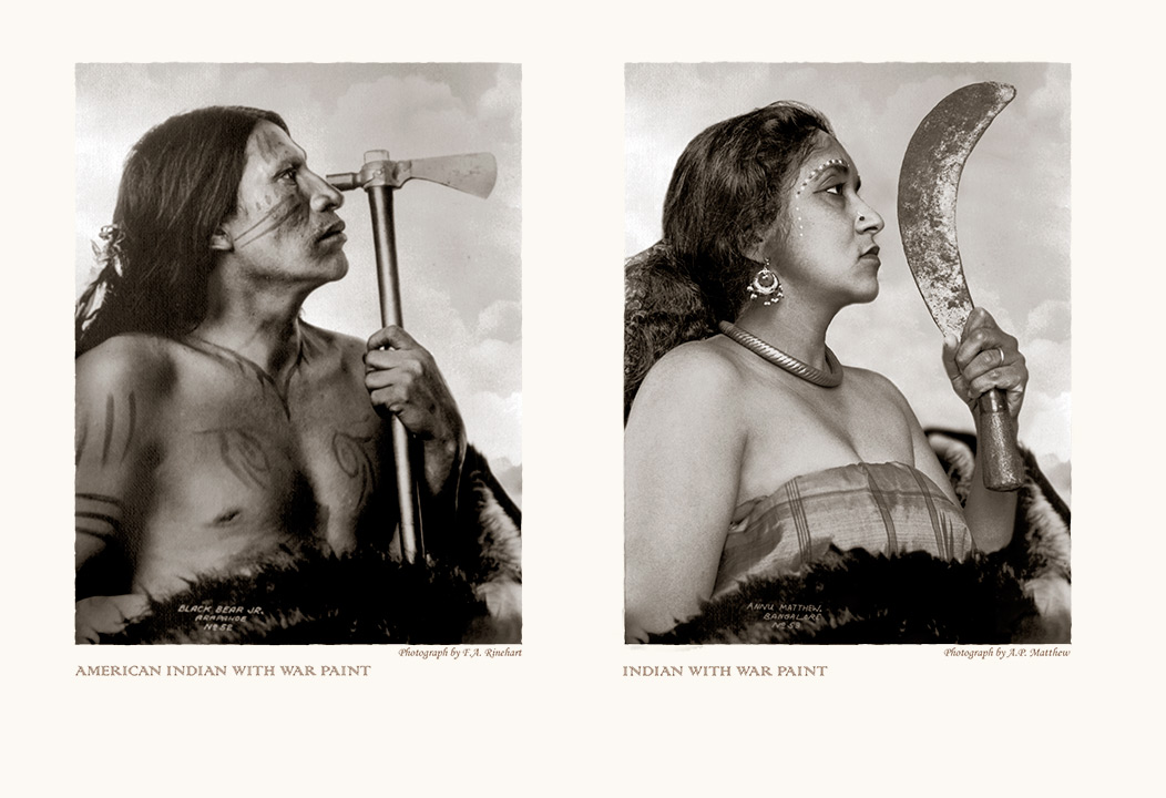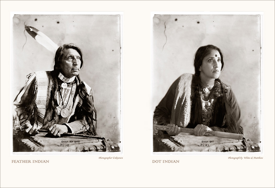 In this portfolio, I look at the other “Indian.” I play on my own “otherness,” using photographs of the indigenous from the Nineteenth Century and early Twentieth Century that perpetuated and reinforced stereotypes. I find similarities in how Nineteenth and early Twentieth century photographers of the indigenous looked at what they called “the primitive natives,” similar to the colonial gaze of the Nineteenth century British photographers working in India.