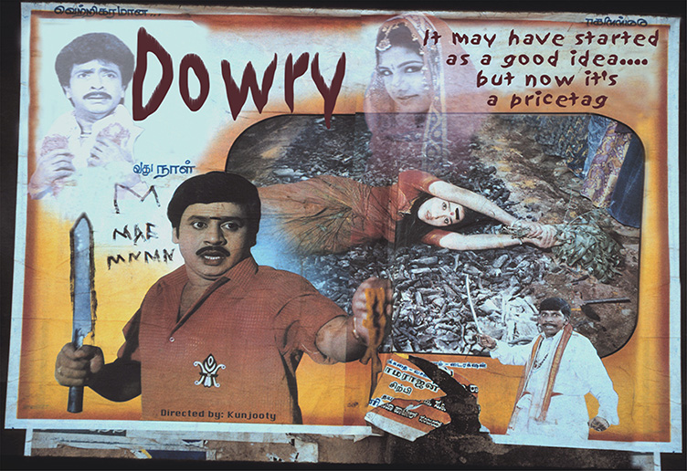 Using digital technology to alter the Indian movie posters, I re-interpret the images to make blatantly satirical commentary and humorously challenge traditional gender roles and behavior in Indian society based on my experiences. The final images include myself, other imagery and text from other sources. As Helen Harrison of the New York Times wrote “Annu Palakunnathu Matthew’s manipulations of Indian movie posters change commercial stereotypes into indictments of oppression and violence against women.” Also, Christiane Paul, curator of New Media Arts at the Whitney Museum of American Art wrote “Annu Palakunnathu Matthew’s work focuses on the politics of gender and race. The posters use the traditional visual language of the movie industry’s ‘dream factory’. Inscribed with text that draws attention to gender and cultural stereotypes as well as nuclear politics, Matthew’s posters deconstruct the creation of message and context through visual images.”